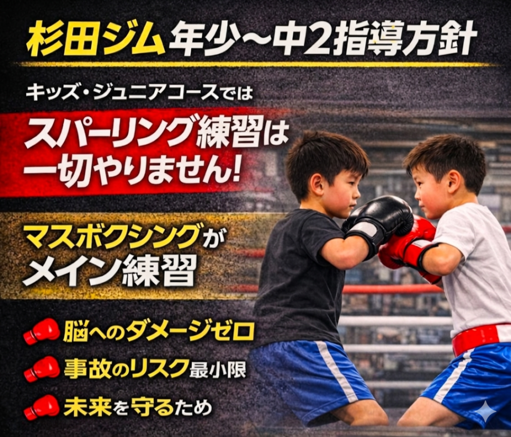 小学5年~中学2年までのコース。マスボクシング(当てない実戦練習)を中心にサンドバッグやミット打ち等を行います。その子の個性、特徴を伸ばす指導を心掛けています。🏃アスリートコース専用ページもご覧ください。